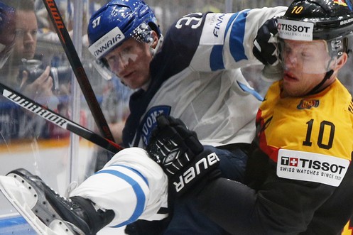 Hier fräst ein DEL-Spieler voll Karacho den Linienrichter um