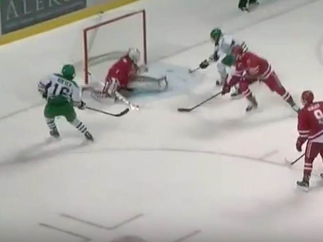 Kick-Save vom Feinsten: Wenn ein Hockey-Goalie solche Verteidiger hat, dann kann man ihm nur gratulieren