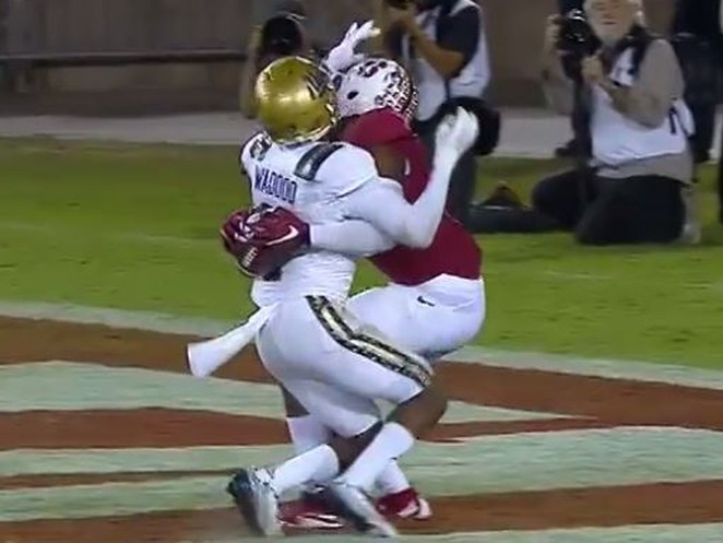 Echt jetzt? Das gibt's doch nicht! Dieser NHL-Spieler kann nicht mehr aufstehen, da sich des Gegners Stock in beiden Schlittschuhen verfangen hat