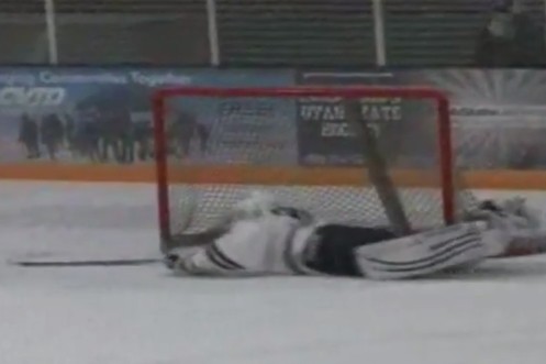 Dieser Eishockey-Goalie hat das Siegerbier schon vor dem Spiel getrunken. Vielleicht waren's auch zwei oder drei…