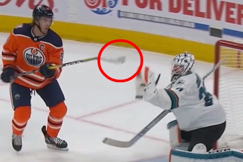 So leidet ein NHL-Schiri, der gerade ein Tor mit seinem Bauch geschossen hat