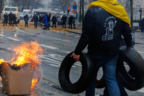 Europäische Jungbauern demonstrieren in Schengen