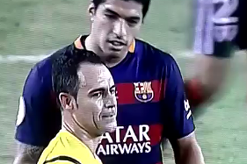 Keine Sorge: Dieses Mal beisst Suarez nicht, er schaut nur dem Schiedsrichter auf die Uhr