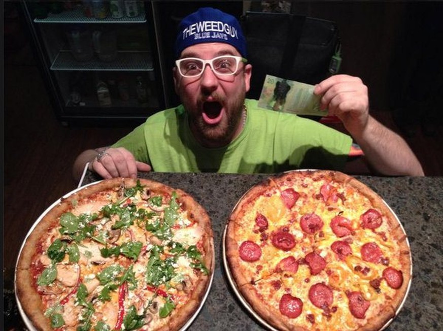 Jede Pizza enthält 250mg Hanföl und während uns nicht ganz klar ist, was dies genau für den Geschmack bedeutet, beteuert Besitzer Mark Klokeid: «Diese Einzeldosis-Pizza hat meinen Kumpel von 12.45 Uhr bis 20.30 Uhr in den Sessel gedrückt.»