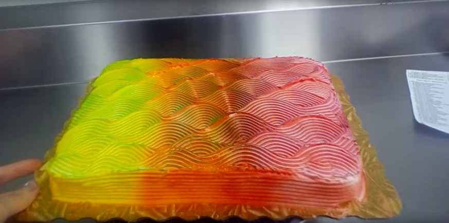 Gelb-orange-pink oder grün-blau-lila? Das Internet streitet über einen bunten Kuchen