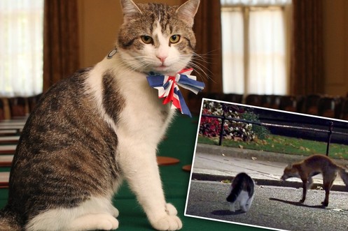 Larry, le célèbre chat au service de l'Angleterre, terrorise un renard🦊