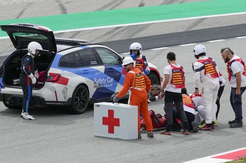 Une moto lui roule dessus: ce pilote a eu la peur de sa vie