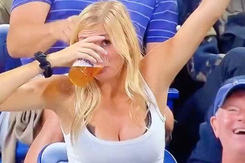 Elle boit cul sec sa bière et vole la vedette aux joueurs à l'US Open