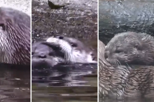 Une loutre apprend à nager à son petit - c'est trash et chou à la fois