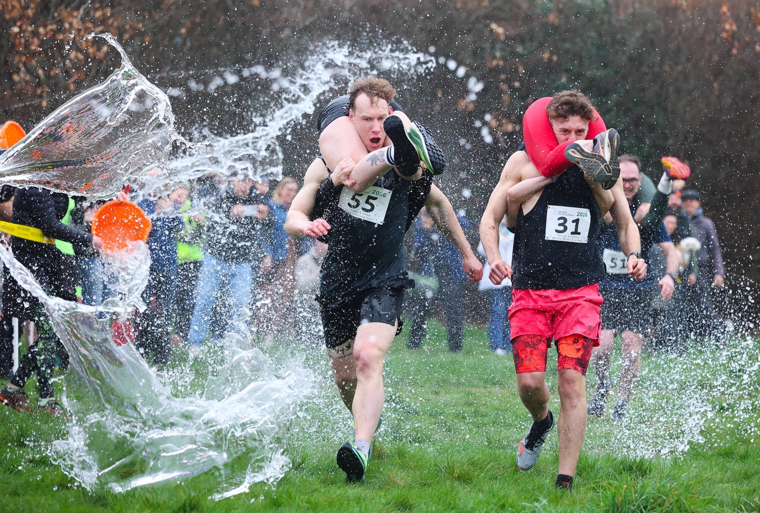 A Dorking, dans le Surrey, certains passent leur dimanche à courir… avec leur partenaire sur les épaules. La course annuelle de «portage d’épouse» y a réuni des dizaines de participants venus affronter un parcours de 380 mètres dans une ambiance aussi sportive déjantée britannique.