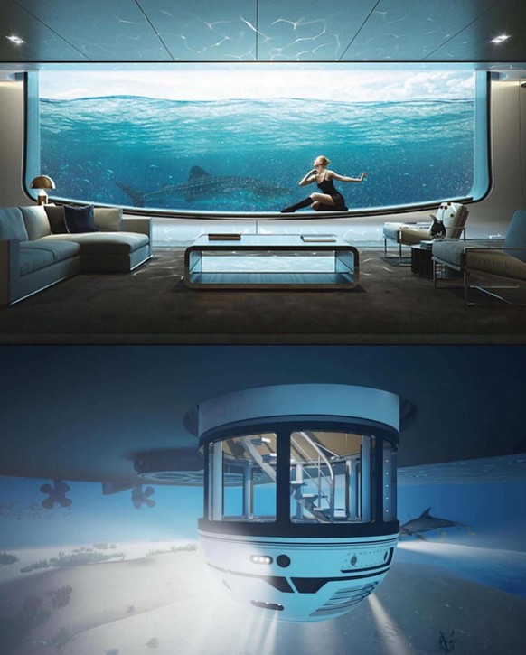 A l'intérieur, il y a une salle d'observation sous-marine de 18m2 pour dire coucou aux poissons et aux mammifères marins qui doivent se demander qu'est-ce que c'est que cette énorme boîte de conserve flottante.