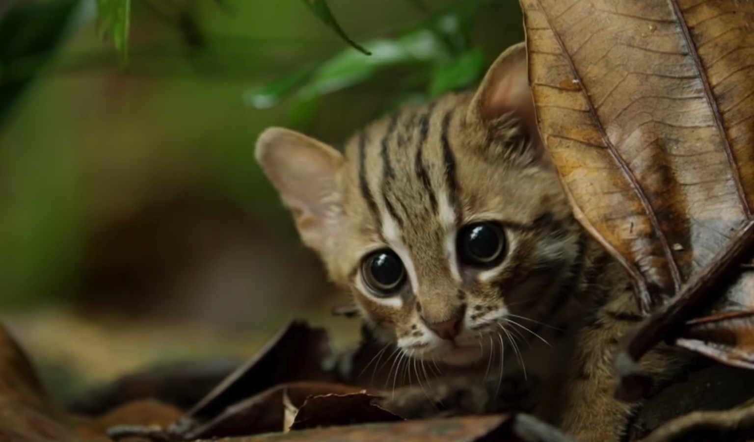 Le plus petit félin sauvage au monde est le Chat rubigineux, originaire d'Inde et du Sri Lanka. Mesurant environ 35 à 40 cm, il tient dans la paume d'une main.Image: BBC