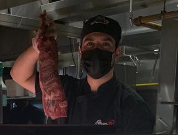 Inutile de commander une côte de bœuf dorée pour que le boucher vienne la couper devant vous. Il passe à chaque table et fait son show: il découpe la viande avec un couteau qui ressemble à un sabre, en se déhanchant presque de manière sexuelle. C'est une performance dont il n'a pas l'air de se lasser. Les clients le gratifient de «Oooh!» «Ahhh!» tout en le filmant et en l'applaudissant (ce que j'ai évidemment fait).
