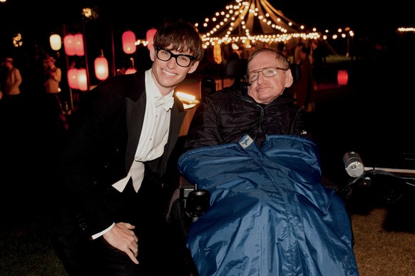 Eddie Redmayne et Stephen Hawking sur le tournage de La danse de l'infini (2014)