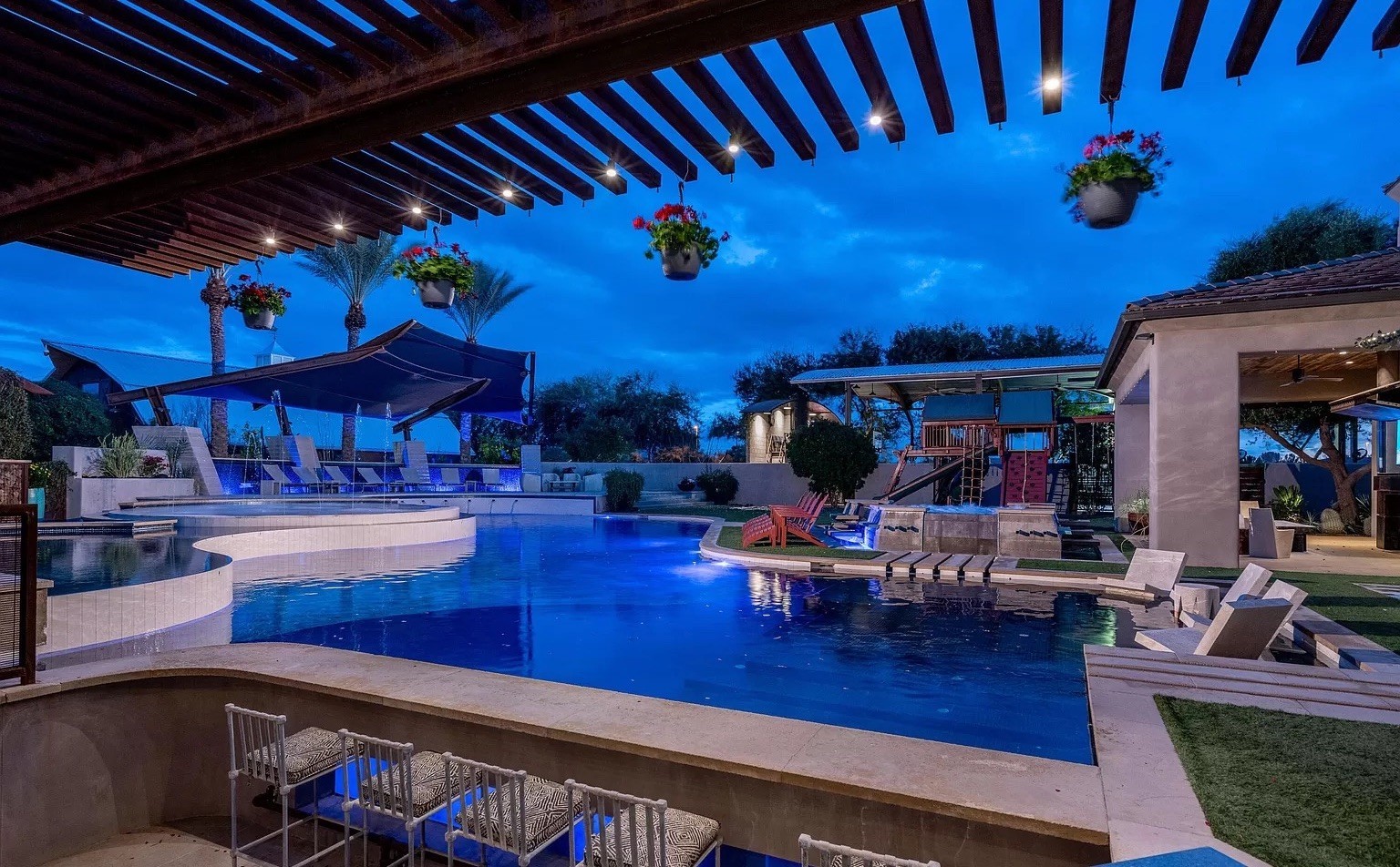Et pour les chaudes nuits d'été (à Phoenix, on ne sort de toute façon pas pendant la journée en été), une jolie cabane de fête. Avec cuisine en plein air, foyer, fontaine – et bien plus encore.