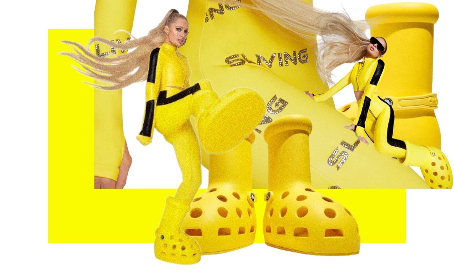 Sliving!!! Après les UGG, les tongs et les stilettos, Paris Hilton devient l'égérie d'une forme de chaussures qui ne devrait pas exister. J'ai nommé: la Crocs. Grande fan de Paris devant l'éternel, l'annonce de cette collaboration entre la marque que j'exècre le plus au monde et la blonde que j'aime le plus au monde aurait dû me peiner. Mais ça, c'était avant de découvrir le modèle lancé par Crocs, en collaboration avec MSCHF.