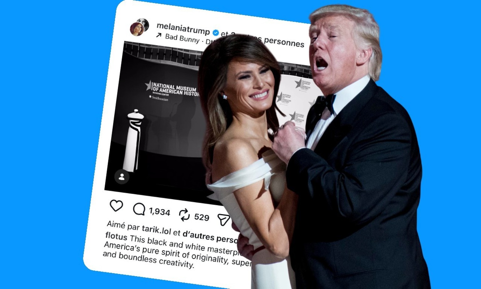 Si l'on peut nourrir une certitude au sujet de Donald et Melania Trump, c'est que l'étrange couple présidentiel ne partage pas les mêmes goûts en matière de playlist. Preuve en est le choix de chanson de Melania sur l'un de ses récents posts Instagram, ce week-end: «DtMF» de Bad Bunny, parmi les détracteurs les plus célèbres et influents de Donald Trump.