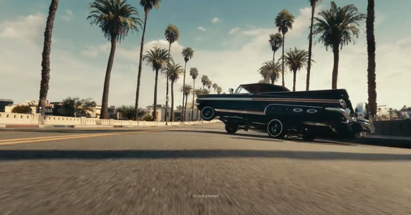 D’ailleurs, Mary J. Blige fonce dans sa Bugatti pour rejoindre le stade et Snoop Dog fait un demi-tour serré à bord de sa lowrider, cette fameuse voiture qui saute. C'est à peine lisible mais il est écrit en tout petit «ne pas tenter» sur l'écran.