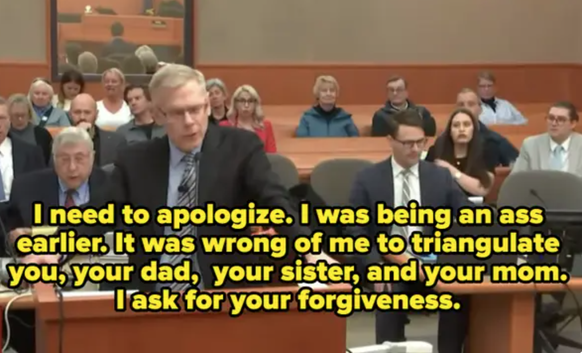 Alors que la fille de Terry Sanderson a également été appelée à la barre, l'avocat de l'actrice s'est excusé de ses questions inquisitrices. «I was being an ass earlier.» Traduction: