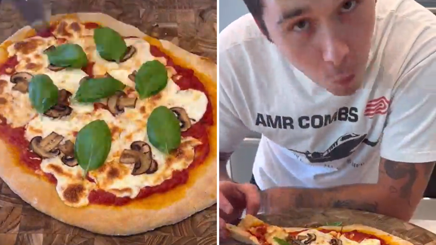 Dernière création en date: une pizza. Brooklyn a posté une vidéo sur Instagram où le voit confectionner un étrange frisbee. Le Britannique de 23 ans commence par mélanger la pâte, la pétrir, l'aplatir, faire rôtir des champignons, ajouter de la mozza et mettre sa création au four. Il a même réussi à ne pas se couper en ouvrant une boîte de tomates en conserve... quel chef!