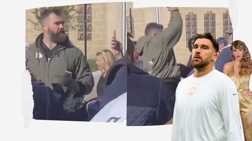 Une vidéo montre un jeune homme interpeller Jason Kelce par derrière. Des témoins oculaires rapportent que l'homme a insulté Travis Kelce, tenant des propos homophobes, et ciblant sa relation avec la superstar de la pop Taylor Swift.