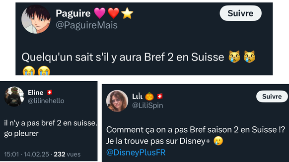 Et nous ne sommes pas les seuls. Sur les réseaux sociaux, la grogne et l’incompréhension sont aussi franches que bruyantes. Notamment sur la plateforme X, où les Suisses privés de la deuxième saison de bref. semblent parfaitement inconsolables.