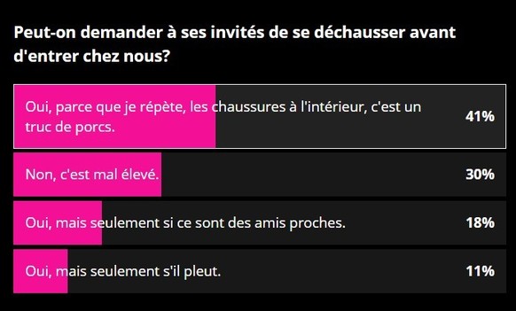 Vous êtes une majorité à considérer que ce n'est pas OK d'enlever ses chaussures sur son lieu de travail (62%).
