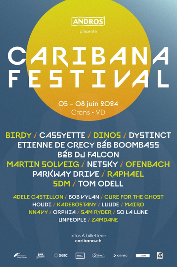 La 32 ème édition du Caribana Festival déploiera ses ailes à Crans-près-Céligny (VD) du 5 au 8 juin 2024. La programmation rassemble des talents de la scène internationale et de la scène helvétique. Comme l'explique le Caribana dans son communiqué: