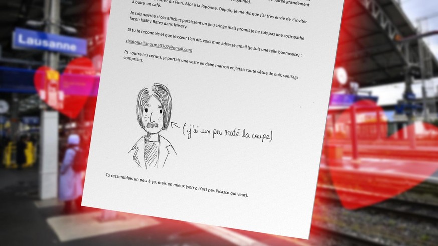 Se rappelant d'une histoire poétique parue dans watson, Marie prend une décision un peu dingue. Elle prépare une dizaine de petites affichettes, un «wanted» du courrier du coeur, qu'elle compte placarder à Lausanne, dans les quartiers du Flon, de Saint-François et de la gare.