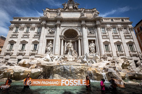 Des activistes colorent en noir l'eau de la fontaine de Trévi