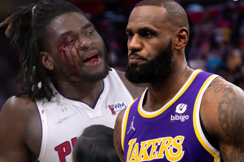 LeBron James coursé par un adversaire en sang