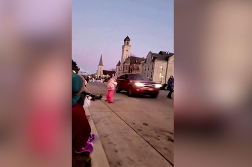 Un 4x4 fonce dans une parade de Noël dans le Wisconsin