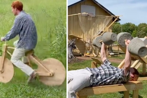 Il a construit un fitness en bois dans sa ferme