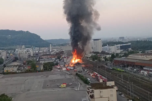Incendie d'un bâtiment industriel près d'une gare CFF