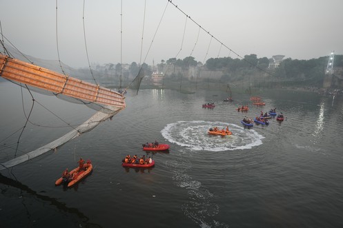 En Inde, 130 morts après l'effondrement d'un pont suspendu