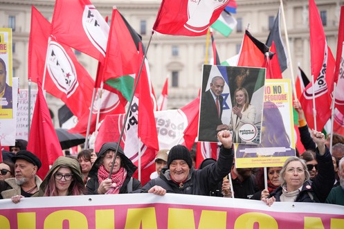 Ils brûlent des photos de Meloni et de Trump durant une manifestation