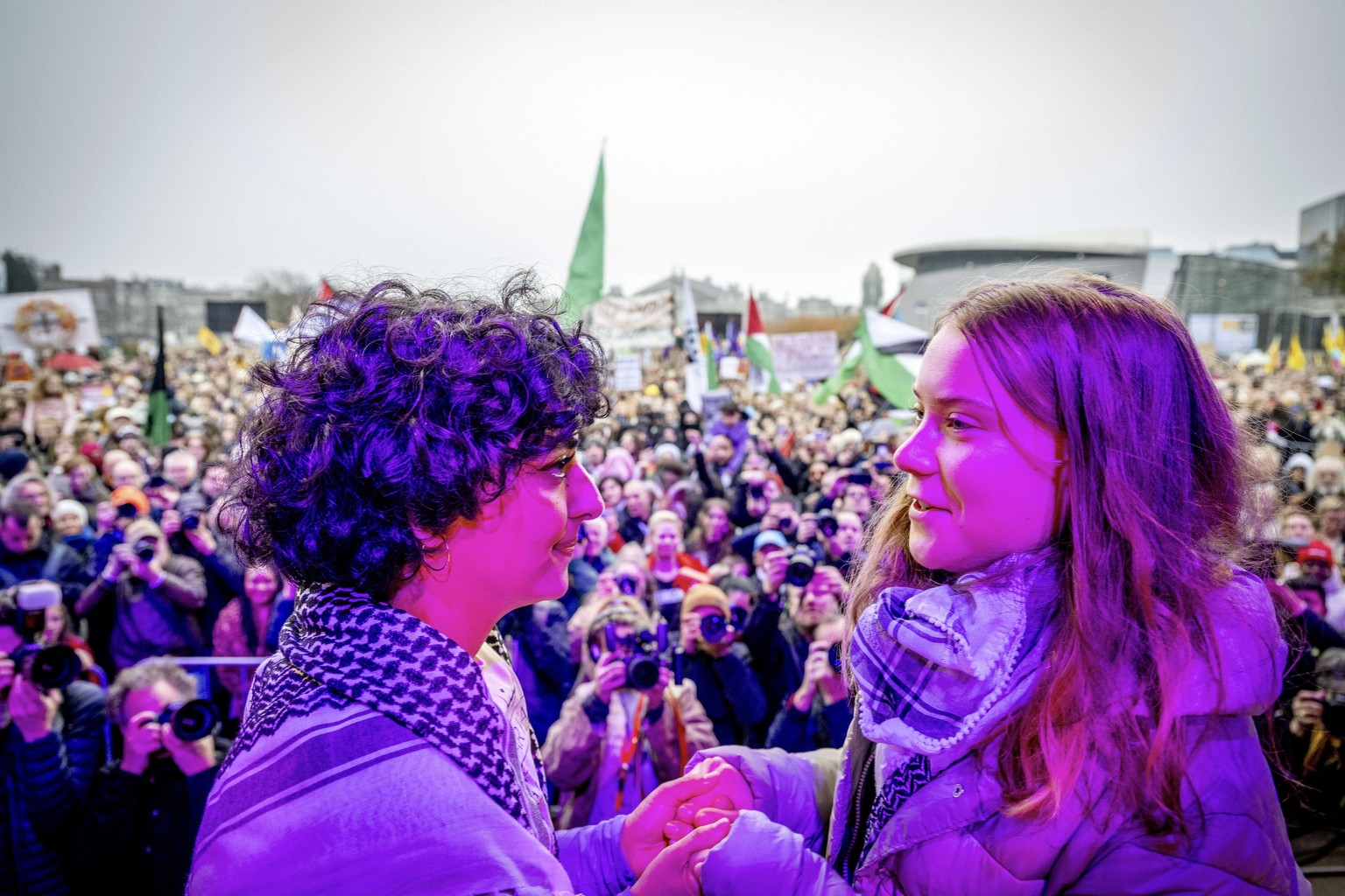 La même association entre la cause palestinienne et la justice climatique est répétée et explicitée dimanche dernier, lorsque Greta Thunberg rejoint une méga-manifestation pour l'environnement à Amsterdam. Sur scène, un keffieh autour du cou, la jeune Suédoise donne d'abord la parole à une militante pro-palestinienne, avant d'affirmer: