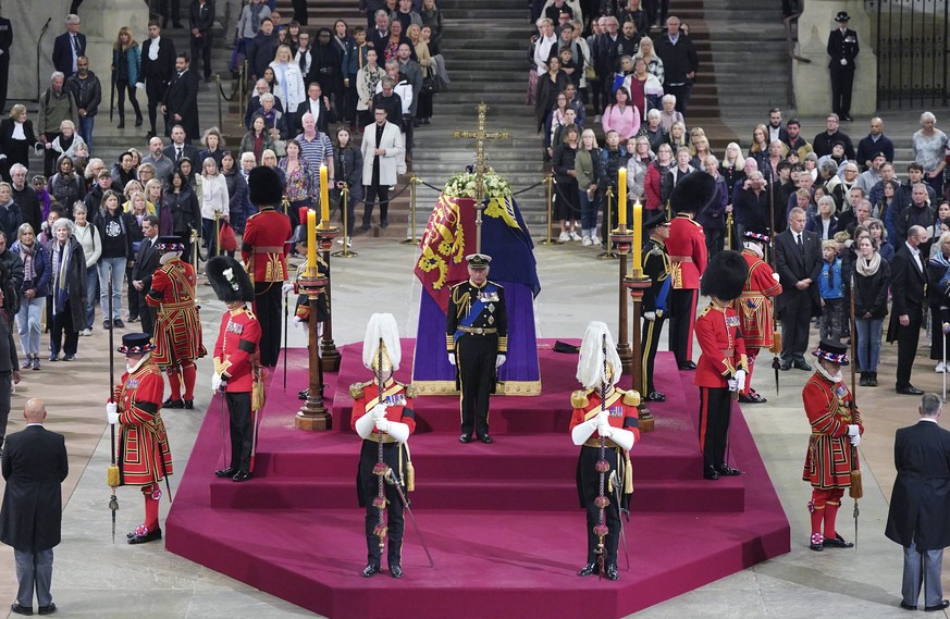 Lundi matin, une procession accompagnera le cercueil jusqu'à l'Abbaye de Westminster où se tiendront les funérailles, à midi. Il s'agit des premières funérailles d'Etat depuis celles de Winston Churchill en 1965.