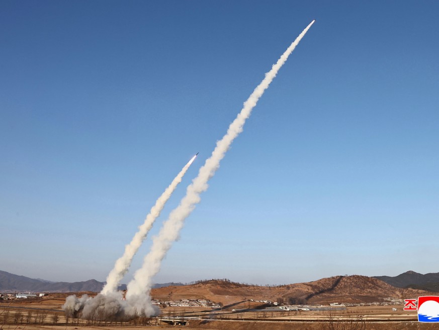 Selon des analystes, le lanceur multiple est destiné à augmenter les capacités de frappes de précision de la Corée du Nord, pour lancer un défi tant à la Corée du Sud qu'aux Etats-Unis (cliché sy ...