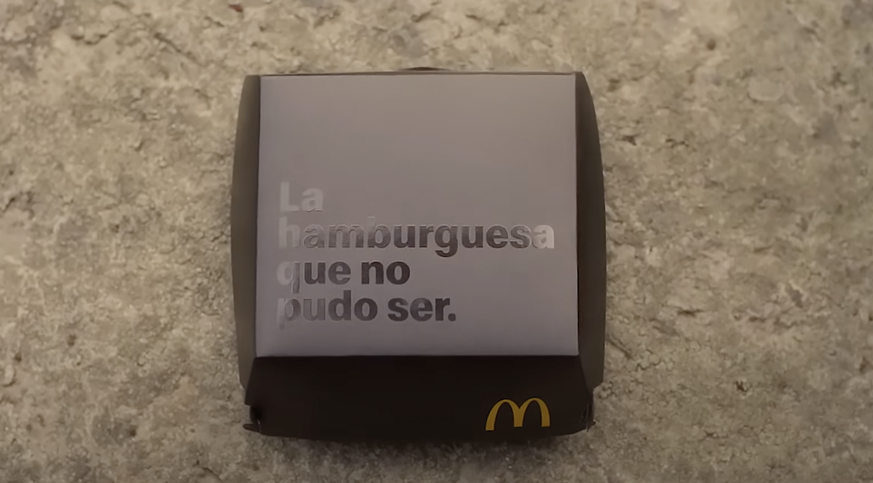 Afin de pallier les pertes financières subies par les paysans et éleveurs de bétail, causées par les incendies de cet été en Espagne, McDonald's a décidé de créer «l'hamburger qui n'a pas pu exister». Il symbolise les produits qui n'ont pas pu être commercialisés, parce que leurs ingrédients ont été détruits par les feux, et permet de sensibiliser sur cette situation qui touche le secteur primaire espagnol. Il coûte un euro et se trouve dans une boîte noire vide (évidemment).