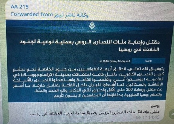 Les services secrets américains surveillent aussi l'EI-K de près. Début mars, l'ambassade américaine à Moscou avait émis un avertissement et demandé d'éviter les grands rassemblements dans les 48 heures suivantes.