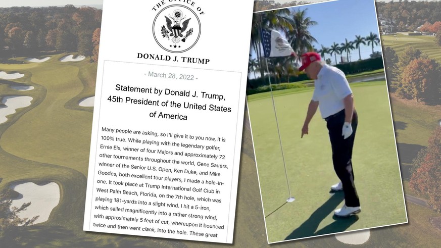 Voilà l'affaire: Donald J. Trump, le 45e président des Etats-Unis, a frappé un trou en un. Et il veut que vous le sachiez.