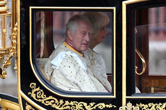 Alors que tout ce beau monde joue des coudes pour trouver son siège, fin prêt à se tourner les pouces encore 40 minutes, le carrosse clinquant de Leurs Majestés Charles III et Camilla s'élance à l'assaut du bitume, direction Westminster. C'est parti mon kiki!