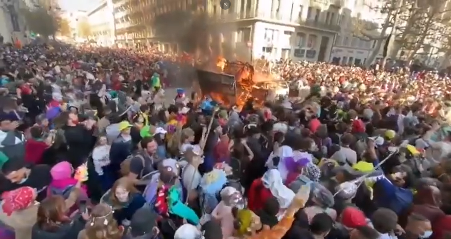 Entre violences, vandalismes et absences du port de masques, France Info rapporte que sept personnes ont été interpellées. Un policier a quant à lui légèrement été blessé. (France Info/mndl)