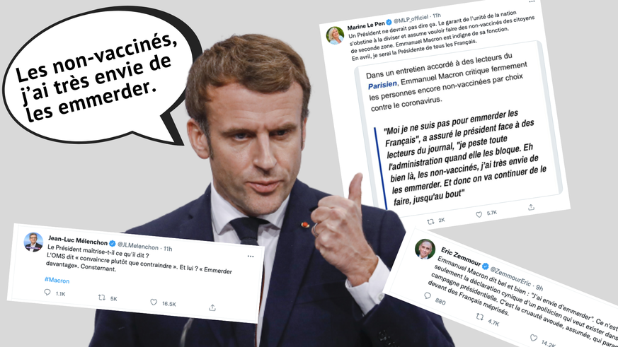 «Les non-vaccinés, j’ai très envie de les emmerder. Et donc on va continuer de le faire, jusqu’au bout. C’est ça, la stratégie.» L'affirmation du président français Emmanuel Macron dans une interview publiée mardi soir dans Le Parisien a suscité une flopée de réactions outrées. Parmi les personnalités à s'étrangler...