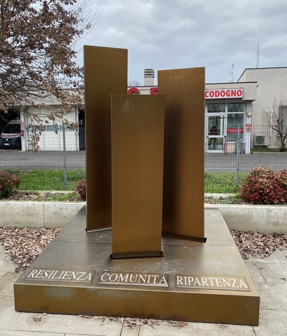 De cette période, il ne reste plus grand-chose, du moins extérieurement. Une petite plaque commémorative posée à l'entrée du cimetière par le président de la République, Sergio Matarella. Et, à une bonne quinzaine de minutes à pied du centre, un monument aux victimes de la pandémie, situé devant le siège local de la Croix Rouge. Trois piliers de fer rouillé, érigés sur un socle où l'on a gravé les mots suivants: «résilience», «communauté», «nouveau départ».