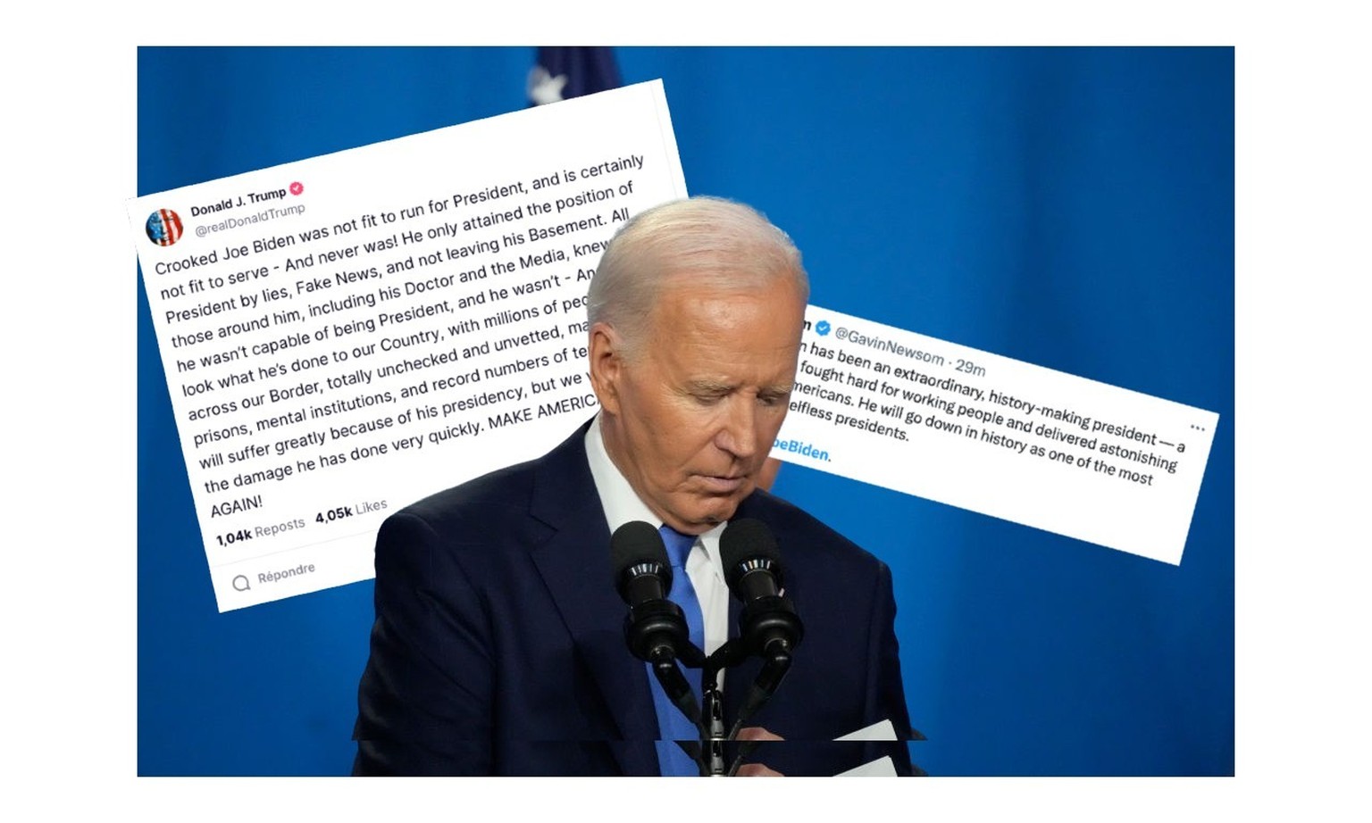 Puis c'est l'influent gouverneur démocrate de Californie, Gavin Newsom, qui a loué «un dirigeant qui s’est battu avec acharnement pour les travailleurs et a obtenu des résultats étonnants pour tous les Américains». «Il restera dans l’histoire comme l’un des présidents les plus influents et les plus altruistes. Merci», conclut le politicien, considéré comme l'un des papables à la succession de Joe Biden.