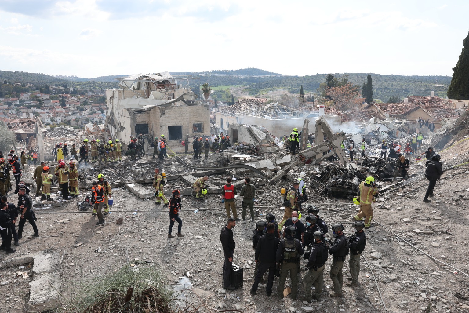 Le rayon de destruction et de dégâts est d'environ un kilomètre, indique Shmuel Greenberg, maire de Bet Shemesh. Il a assisté à neuf enterrements ce lundi. «Ce n'est pas facile», dit-il. Il faut maintenant aider la population. Lors d'un enterrement, la sirène d'alerte aérienne retentit soudainement et les personnes en deuil doivent se mettre à l'abri.