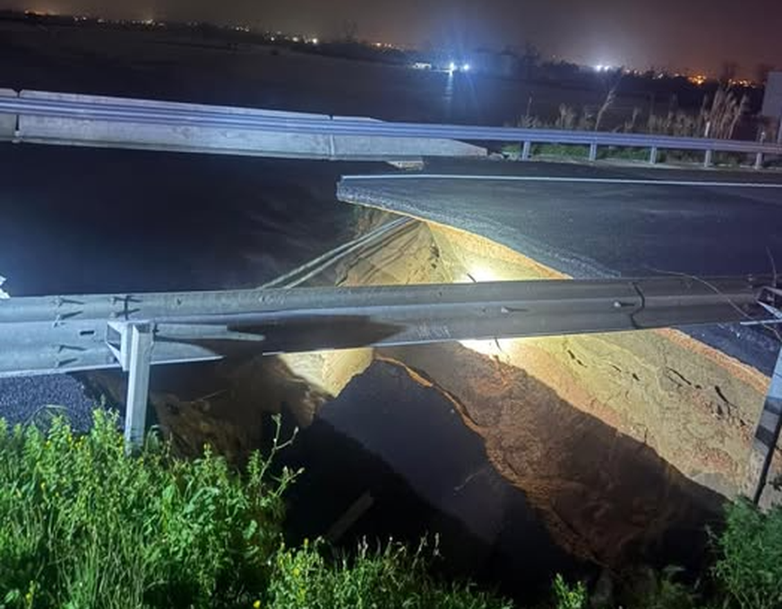 Le tronçon d'autoroute où se trouvait ce viaduc avait été fermé à la circulation, dans les deux sens, après la rupture partielle d'une digue mercredi en fin d'après-midi. L'affaissement s'est produit quelques heures plus tard.