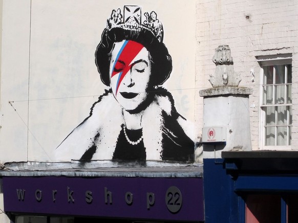 Quant à l'artiste Pegasus, il a pour sa part conçu une Elizabeth toute en jambes (et sans culotte). Vous pouvez aller contempler ce dessin sur la porte du bar Winchester, dans le nord de Londres.
